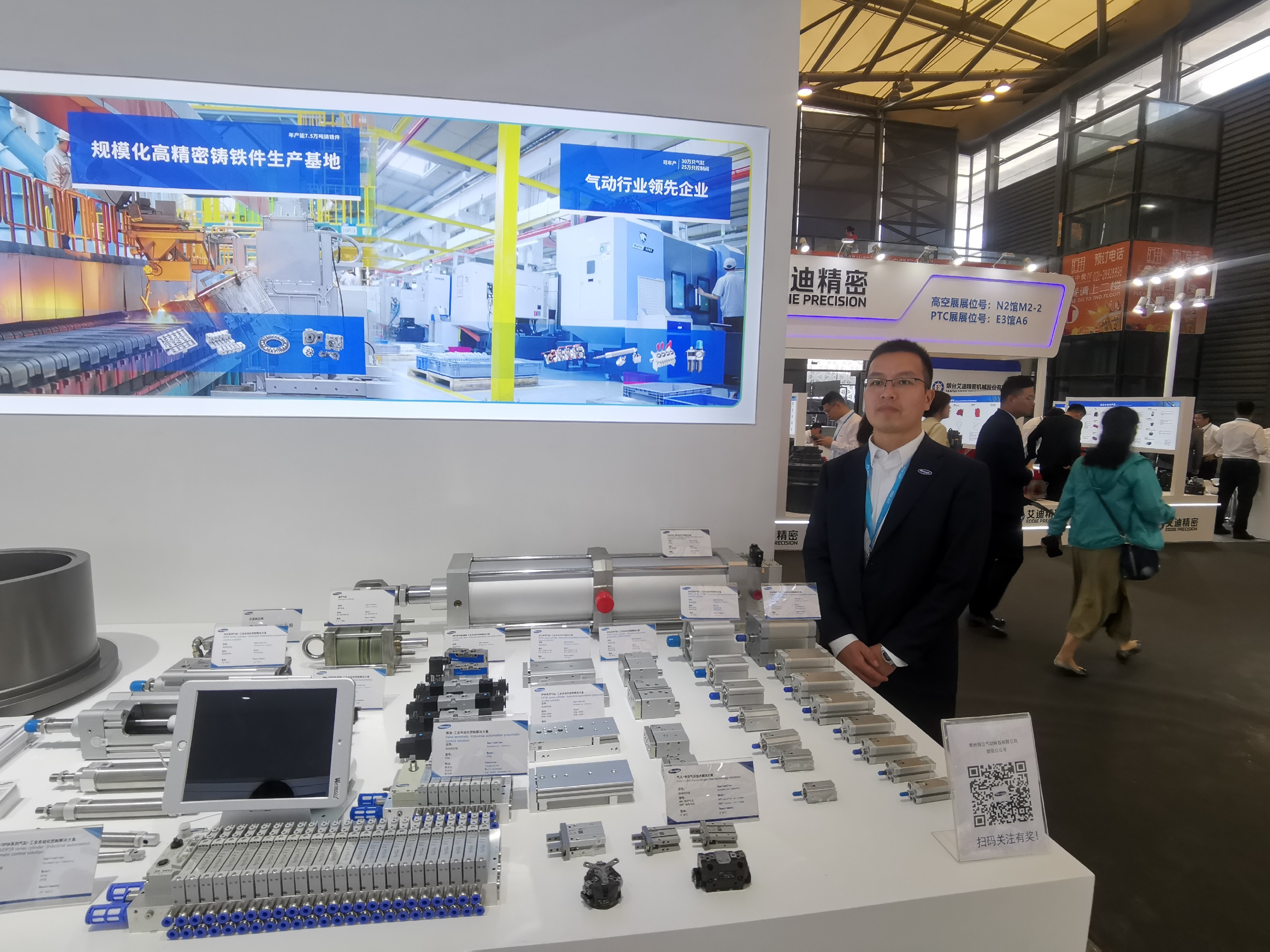 本次参展产品有VTSA系列阀岛、VMDA、VMDB系列电磁阀、DPSC系列紧凑型气缸、DPGB系列小型滑台气缸、DPTA双活塞气缸等一众系列气缸以及自动化整体解决方案。