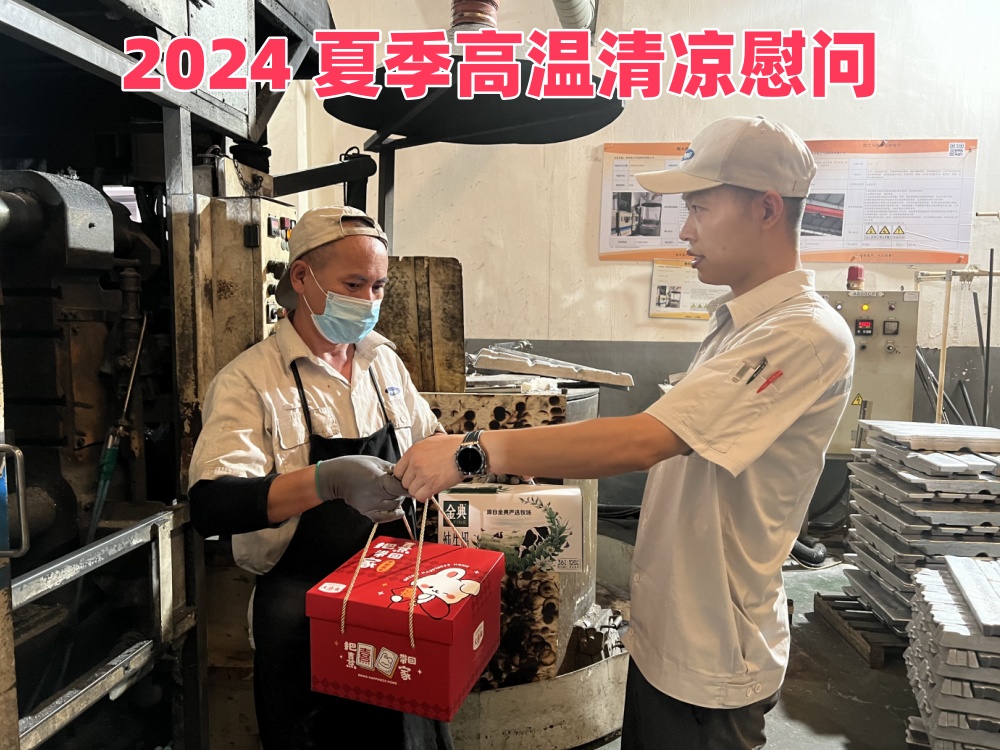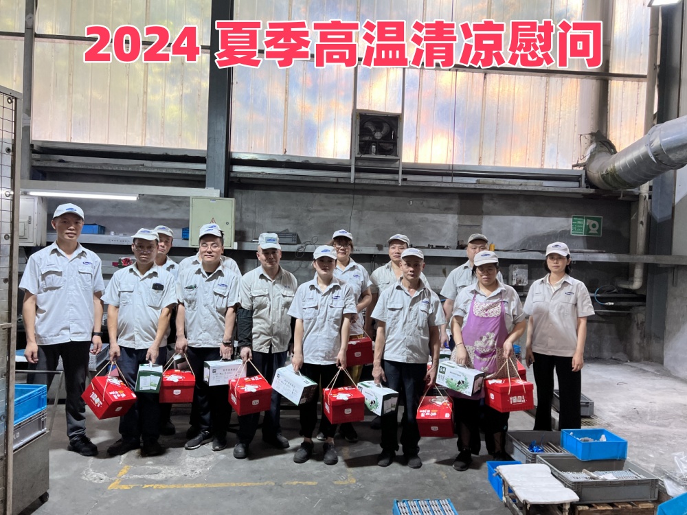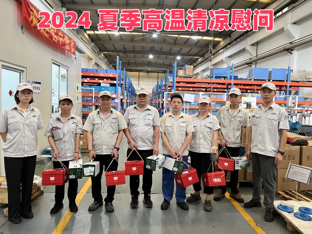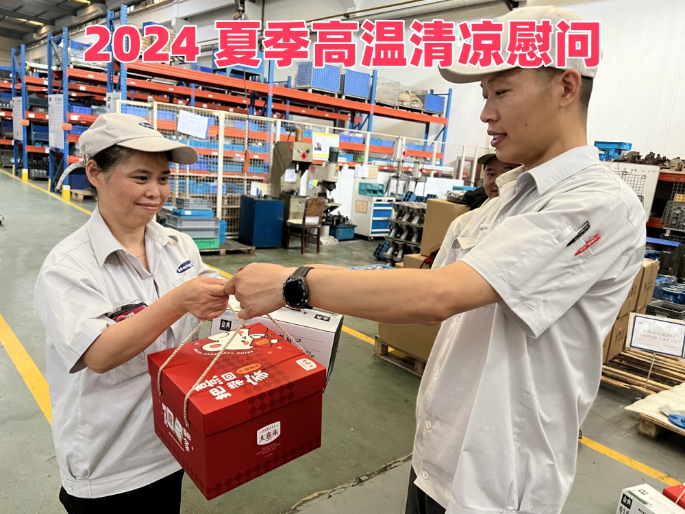 8月8日下午,继上次“夏日清凉”活动之后,恒立气动公司由总经理王新中、管理部经理蒋玉娇带队,再次向基层员工发放了高温慰问礼盒,借此向各坚持在生产一线的员工们表达深切的慰问!