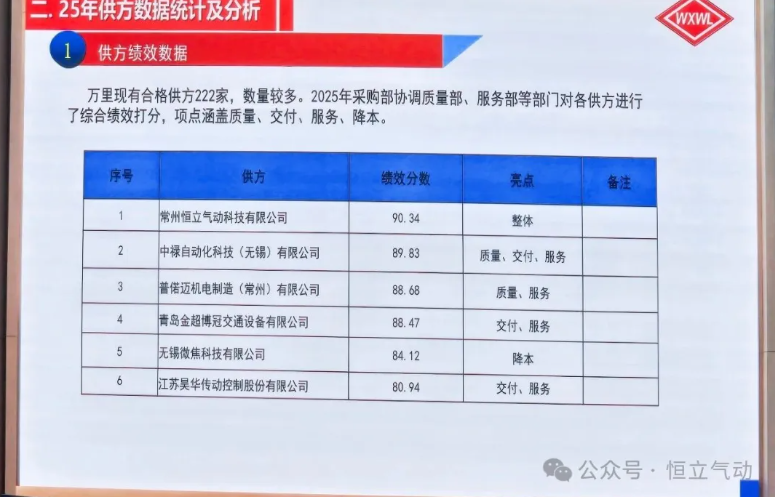 对于恒立气动而言,此次获奖并非终点,而是一个全新的战略起点。它也意味着公司的产品与服务标准,将与行业领军客户的期待持续对标。未来,恒立气动将继续秉承 “技术领导行业,品质铸造未来,品牌带动发展,管理成就员工,实现百年企业” 的核心方针,以更前沿的创新、更可靠的品质和更敏捷的服务,巩固并提升作为万里集团乃至全球高端装备制造领域首选气动合作伙伴的地位,携手并肩,共赢未来!